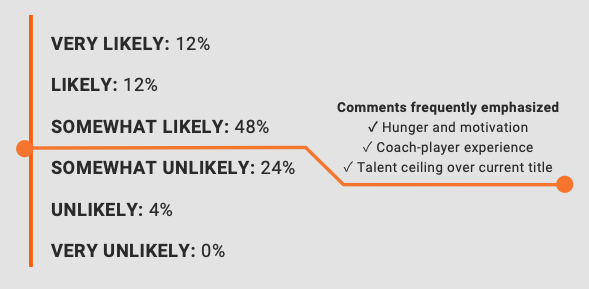 Most hiring managers reported being somewhat likely or likely to hire candidates stepping up from smaller teams or lesser titles. A minority expressed hesitancy, particularly for highly complex or senior roles.